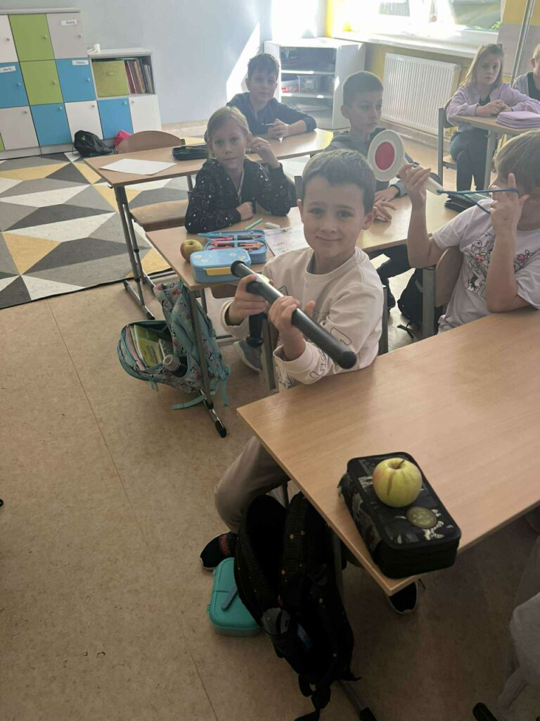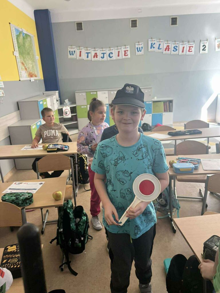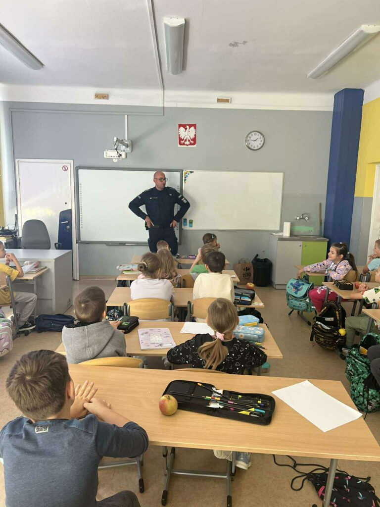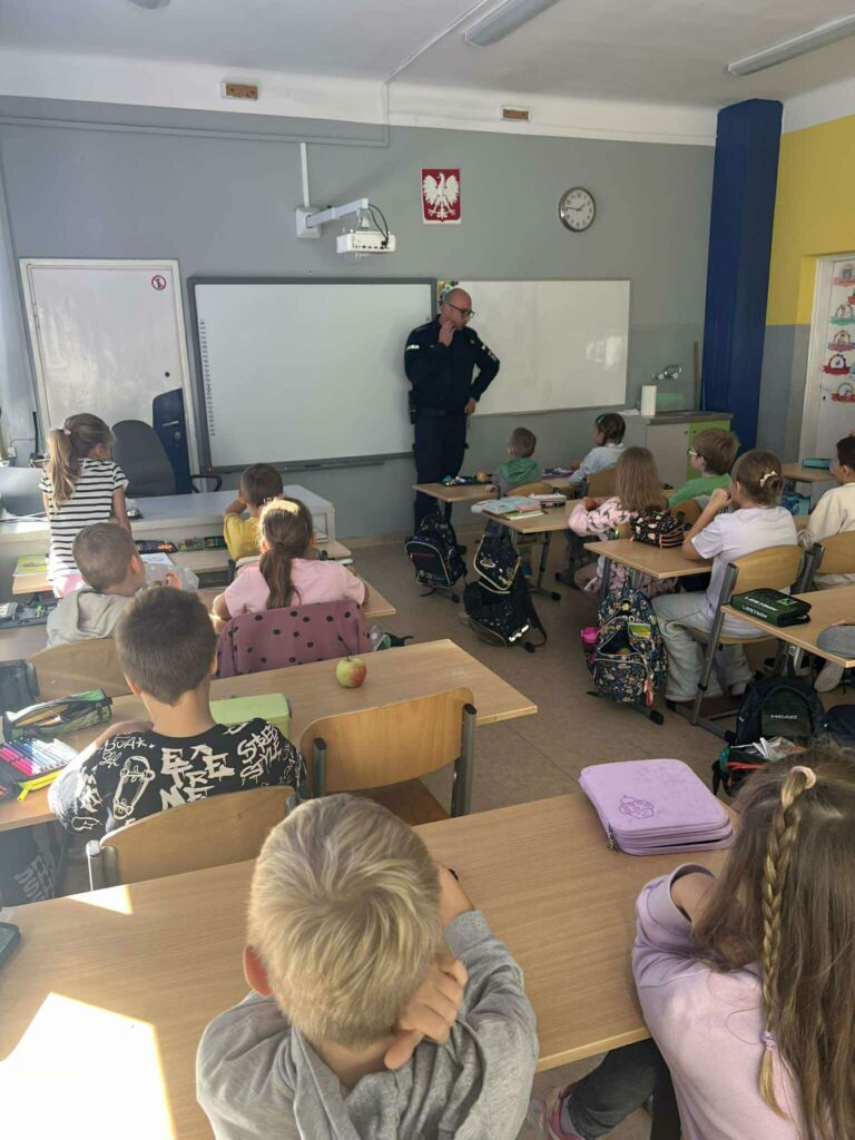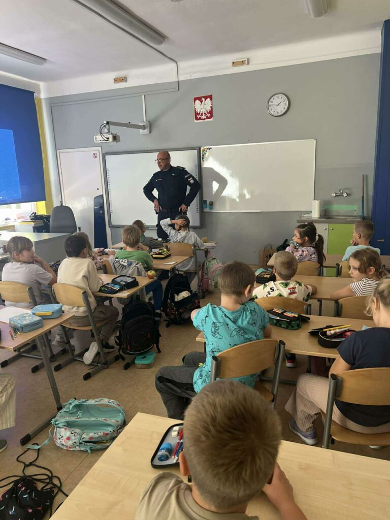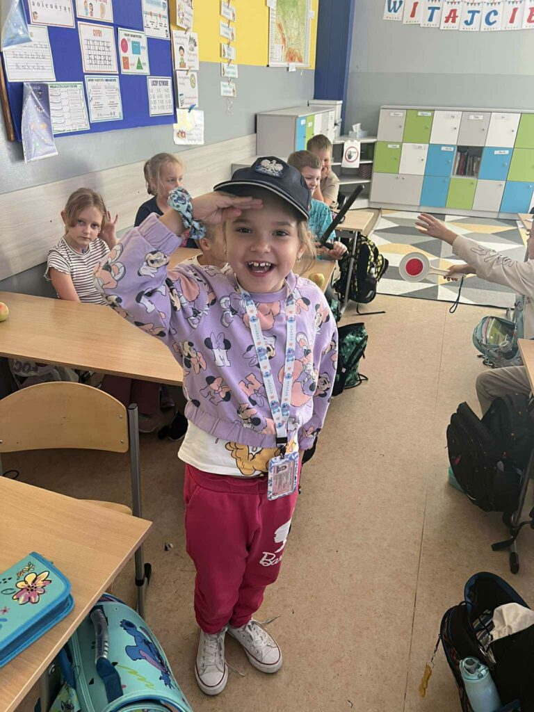Dnia 18 września odwiedził klasę 2c tata Zuzi, który jest policjantem. Pan Krzysztof w sposób ciekawy i inspirujący przedstawił dzieciom wykonywany przez siebie zawód.