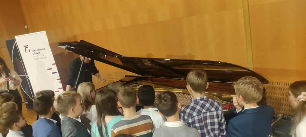 Klasa 3b uczestniczyła w warsztatach muzycznych w Filharmonii Łódzkiej. Miały wielką przyjemność brania udziału w próbie generalnej orkiesty, zwiedzały kulisy filharmonii. Największą radość sprawiła gra muzyczna pt. „Fortepian Rubinsteina”.