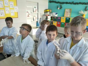 Niedawno w świetlicy szkolnej odbyły się wyjątkowe zajęcia pełne chemicznych eksperymentów, które poprowadził Pan Piotr Pecyna, nasz nauczyciel chemii. Dzieci miały okazję nie tylko świetnie się bawić, ale także zdobyć cenną wiedzę o tym, co oznaczają różne symbole i oznaczenia na produktach chemicznych.