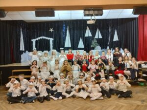 Wśród wielu pięknych akcentów świątecznych w naszej szkole nie mogło zabraknąć też Jasełek. W tym roku w rolę aktorów wcielili się uczniowie klas 1a i 4c a występ uświetnił chór Szkoły Podstawowej.