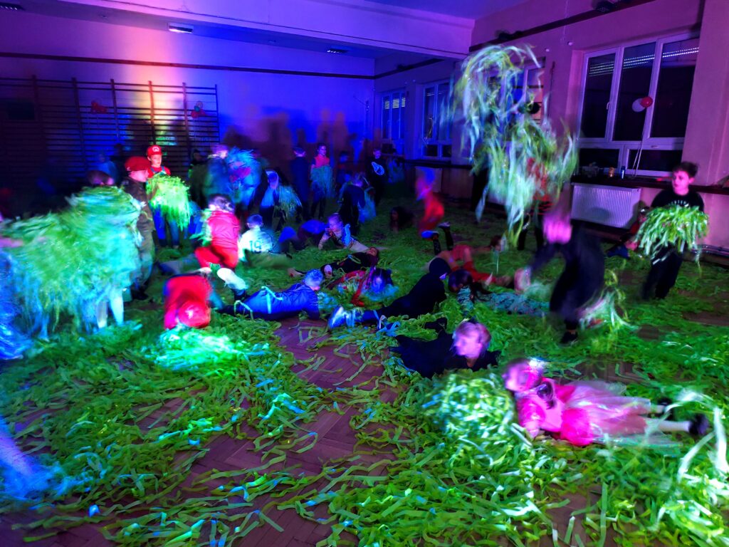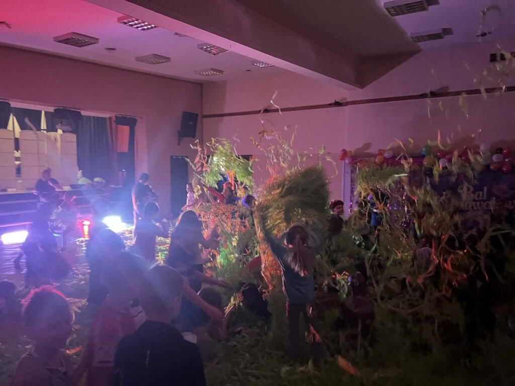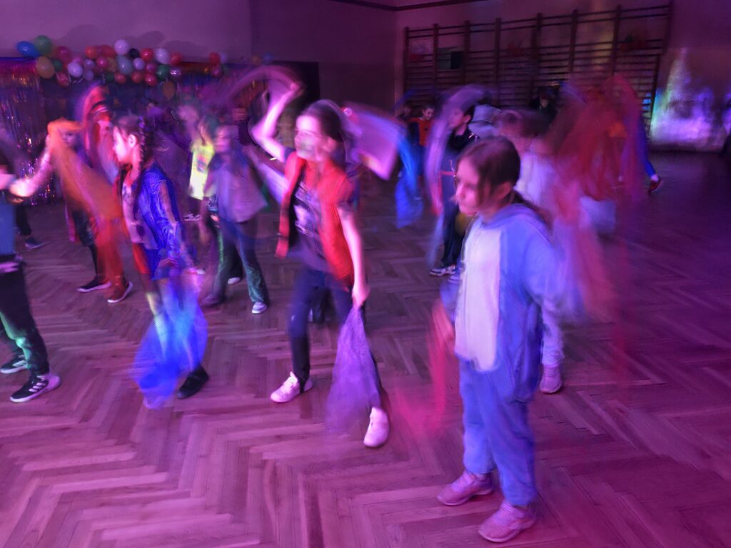 Były tańce bez końca, wspólne zabawy, śmiech, energia nie do zatrzymania i momenty, gdy parkiet zamieniał się w miękkie, zielone „morze radości” 🌊😄 Widać było, że wszyscy bawili się znakomicie – zarówno ci na środku parkietu, jak i ci, którzy podziwiali show z boku.