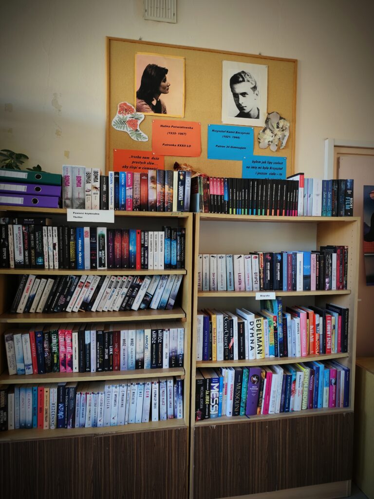 Nasza biblioteka mieści się na drugim piętrze budynku Liceum Ogólnokształcącego. Od kilku lat dysponujemy wyremontowaną czytelnią. Co roku nasz księgozbiór się rozrasta.
